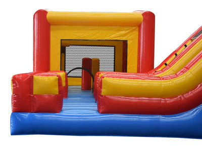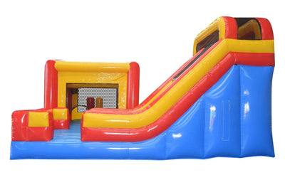 This castle is a very popular choice with all kids. It will keep the kids entertained for hours & will be a huge hit at your event that will give your party the wow factor! This castle is covered so it protects the children from the elements from the sun or rain. This jumping castle also features a huge external slide, a large jumping area, basketball hoop, and tackle bags.